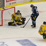 Så kan man väl säga lite kortfattat. Självklart ska man i spel 4 mot 3 under i princip en hel förlängning lyckas avgöra. Men det gick helt enkelt för långsamt. Och straffar är ett lotteri – fick en bra bild (nedan) på Gurra Thorells straff under ordinarie matchtid efter att Jesper Kokkonen rivits ned. Millimetrar [Läs mer]